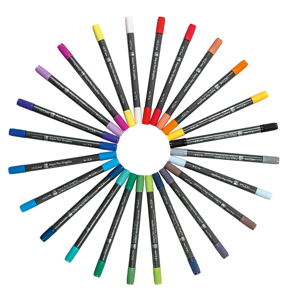 - Aqua Pen – vannbaserte tusjer med dobbel tupp for varierte teknikker