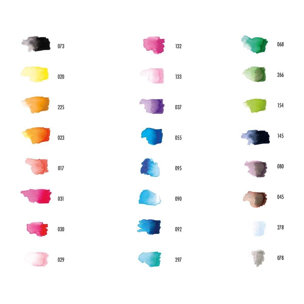 Pigmentbasert akvarelltusj med to spisser. Vannbasert, luktfritt blekk som kan males ut og brukes som en akvarell pĂĄ akvarellpapir. Twin-tip med penselspiss i ene enden og konturpenn i den andre. Pigmentbaserte farger gir lysekte og fargesterke farger til varige arbeider. Leveres i sett med 12 farger og tre ulike sett med 6 farger.