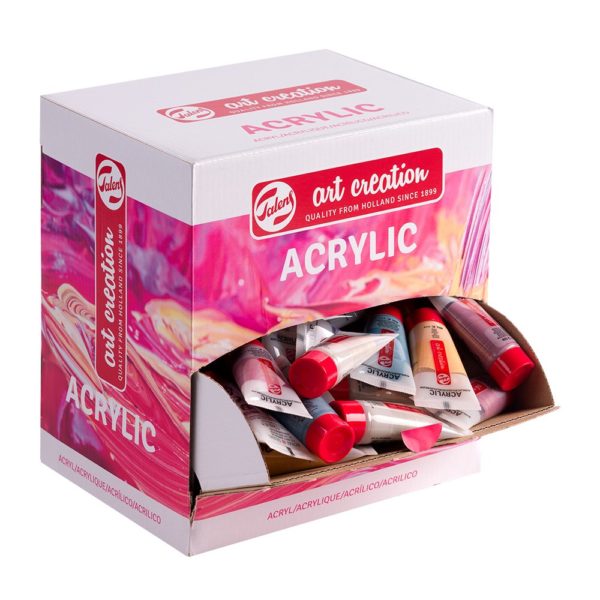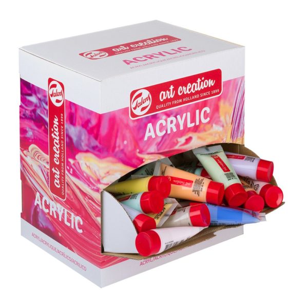 Talens Art Creation akrylfarge er tilgjengelig i 74 farger. Fargene er tilgjengelig i tuber med 75 ml og 200 ml og i bokser med 750 ml. Fargene er lette å blande og kan brukes på ulike underlag så lenge de er tilstrekkelig absorberende, støv fri og fettfri. De mest vanlige er selvfølgelig lerret og papir, men gips, tre, stein og sement er også gode underlag.
