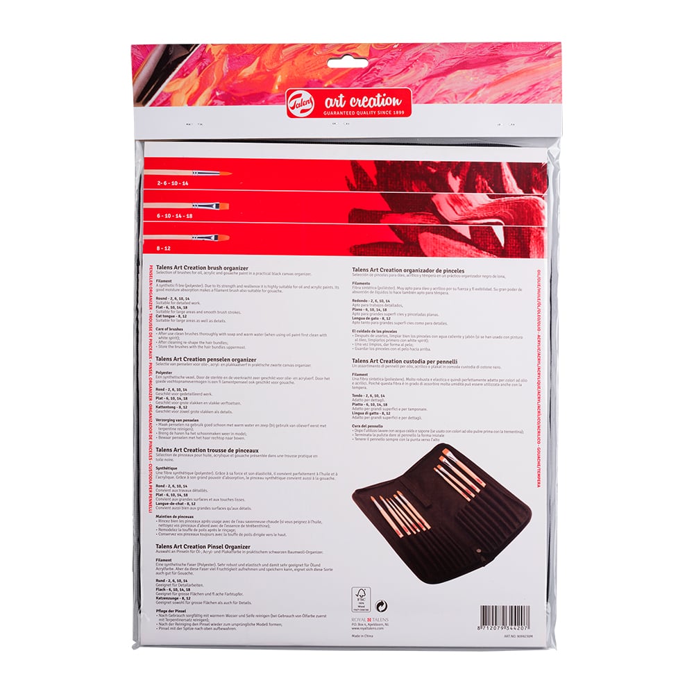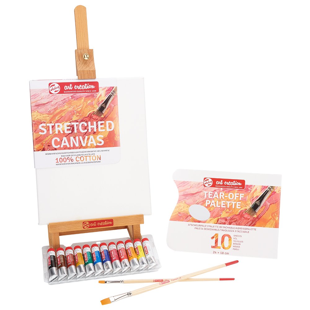 Talens Art Creation er utviklet for alle kunstnere, store og små, som ønsker en god kunstnermaling til best mulig pris. Du finner et komplett utvalg i både olje, akryl, gouache og akvarellmaling. Art Creation har også verktøy som pensler og paletter slik at du enkelt kan overføre dine kreative ideer på lerretet. Er du en nybegynner? Da velger du ett av start-settene med utvalgte farger og enkel trinn-for-trinn beskrivelse. Alt du trenger i tillegg er et par pensler og et lerret – så er du i gang.