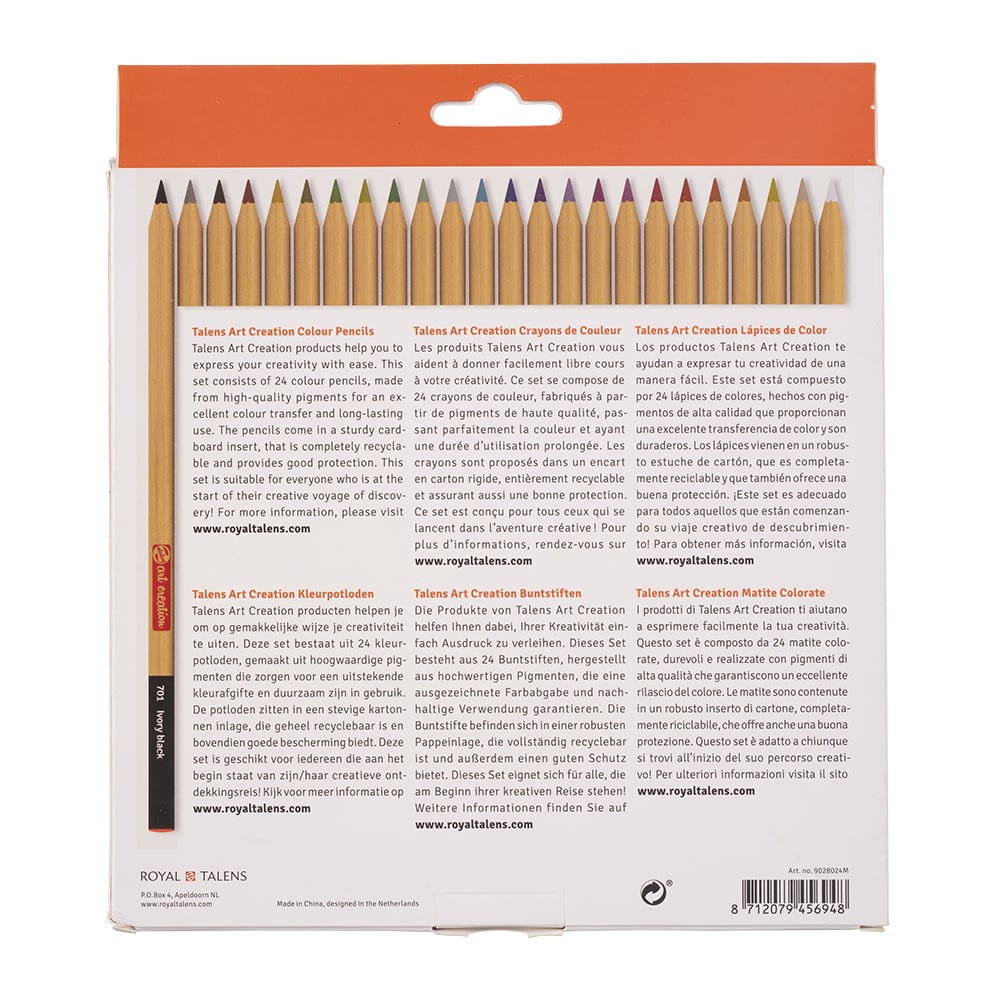 Talens Art Creation tilbyr både fargeblyanter og grafittblyanter. De fargede blyantsettene gir et balansert fargeutvalg, alle laget med høykvalitets pigmenter som gir utmerket fargeoverføring og er holdbare i bruk. Grafittblyantene er tilgjengelige i 12 forskjellige hardhetsgrader, perfekt for skissing og tegning.