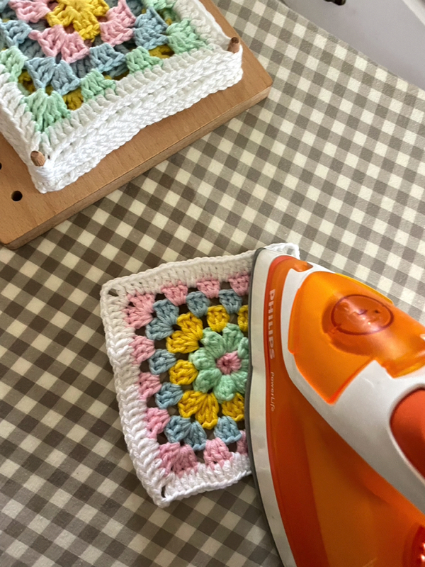 Rutene ble blokket ut ved hjelp av Pryms Loom mini, og jeg gjorde dette både før og etter damping.