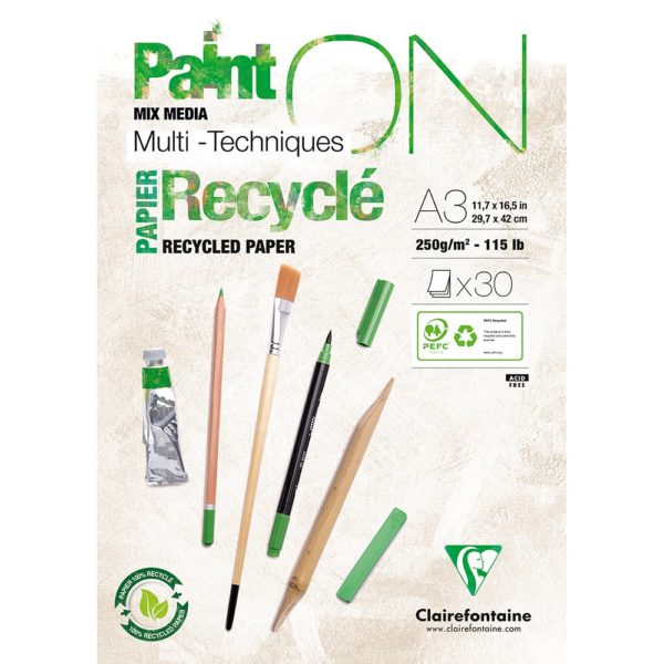 PaintON Mix Media Papirblokk Resirkulert – 30ark 250g – A3