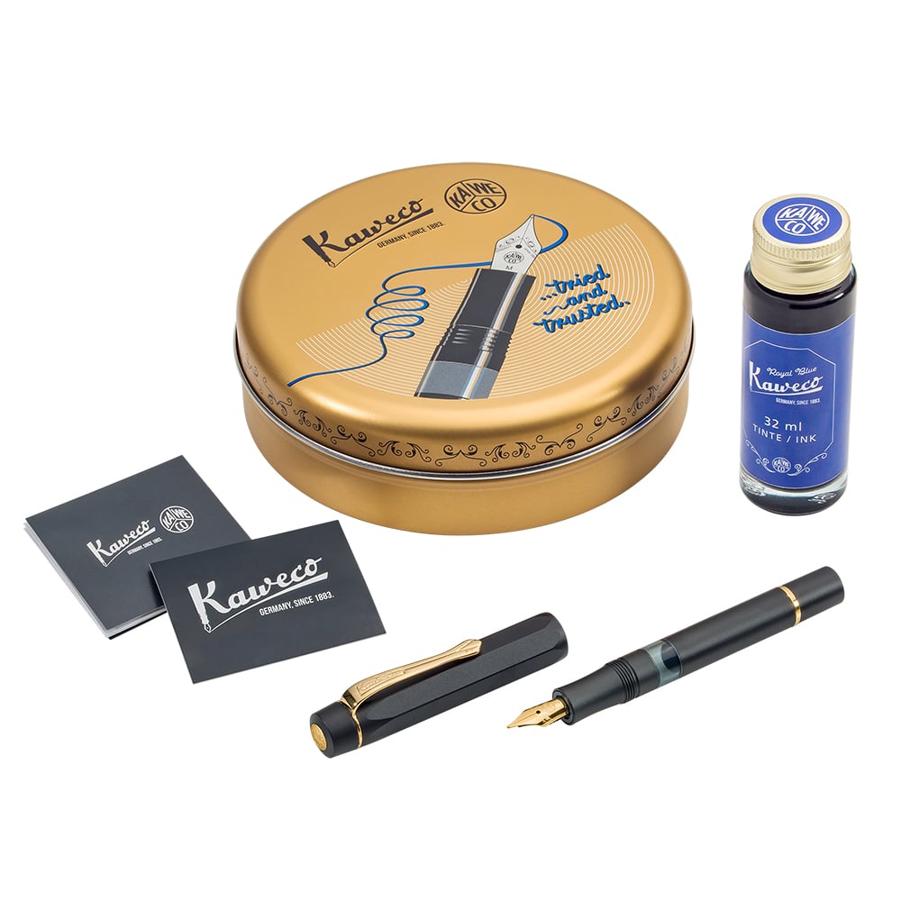 Fyllepenn i aluminium og blått blekk