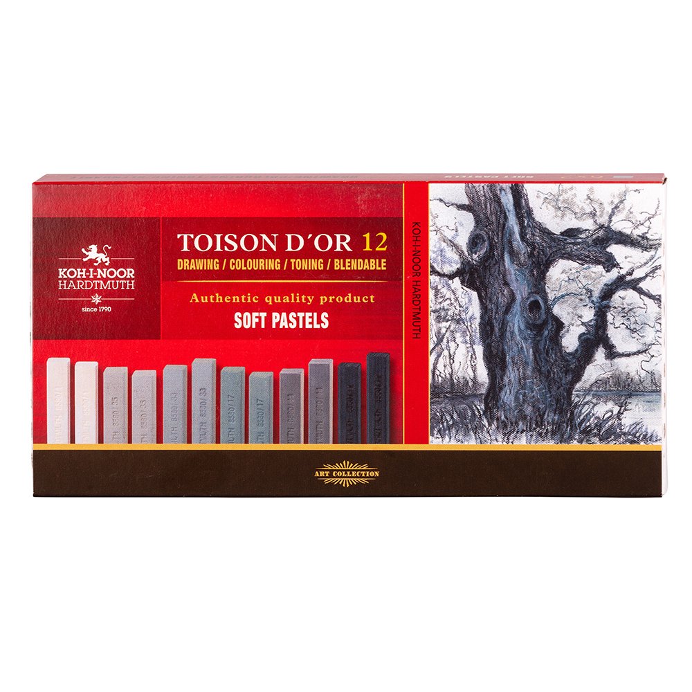 Koh-i-Noor Soft Pastellkritt Firkantet 8592 Sett – 12 Grå