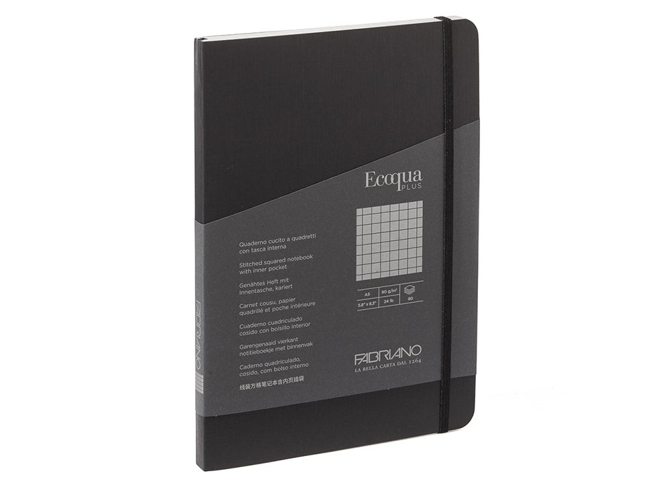 Fabriano EcoQua Plus Sydd A5 Ruter 5mm Black