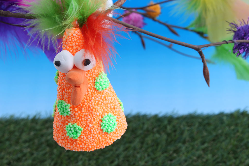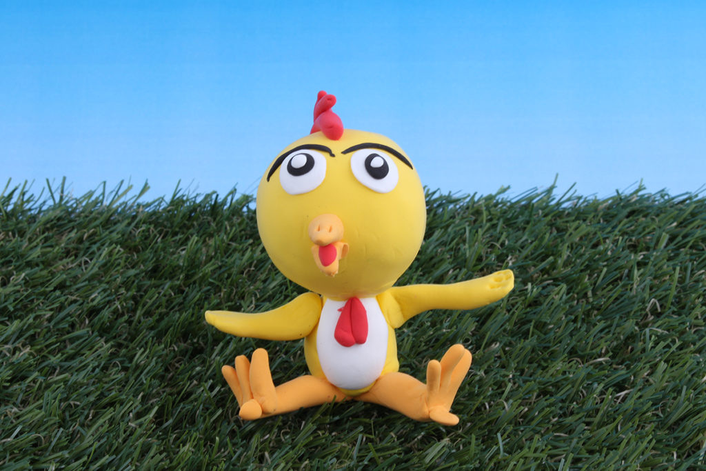 Her er en kylling laget med settet «Baby Chic». Den ble ikke helt som kyllingen på pakken, men det gjør ikke noe. Vi synes denne ble kul!