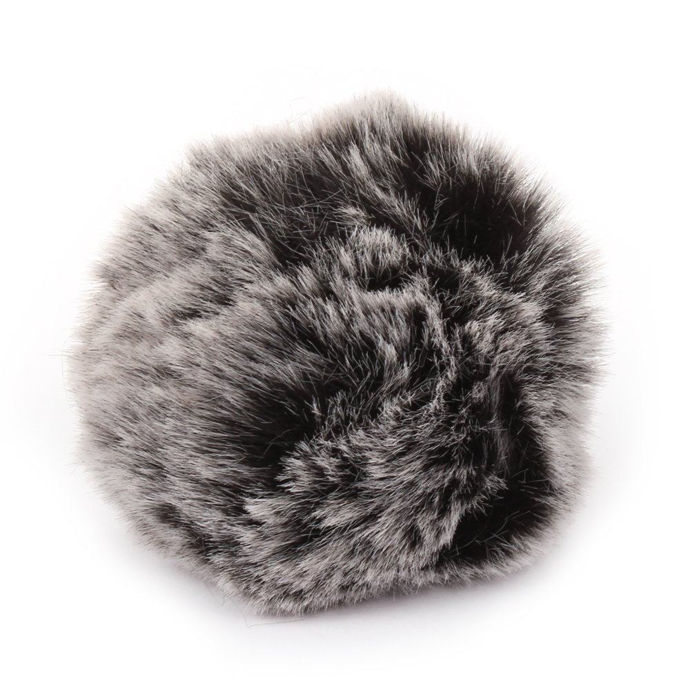 Pelsdusk til hue – Imitasjon – 8cm – Grå/sort