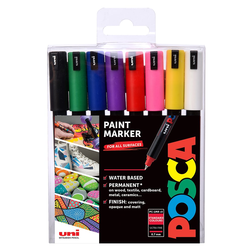 Uni POSCA PC-1MR – Ultra-Fine 0,7mm – Sett Standard 8stk