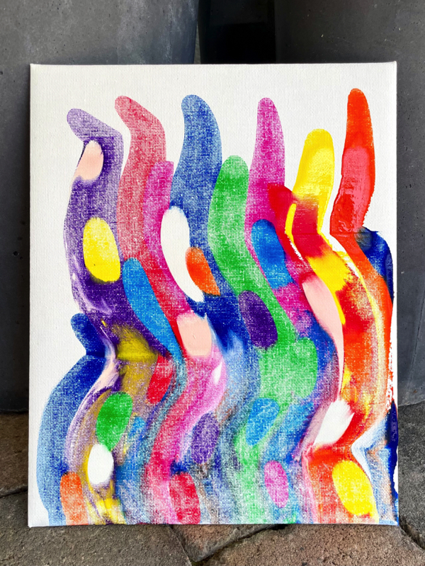 På denne trykket jeg svaberen litt ned på maleplaten, slik at mye av malingen ble med svaberen.